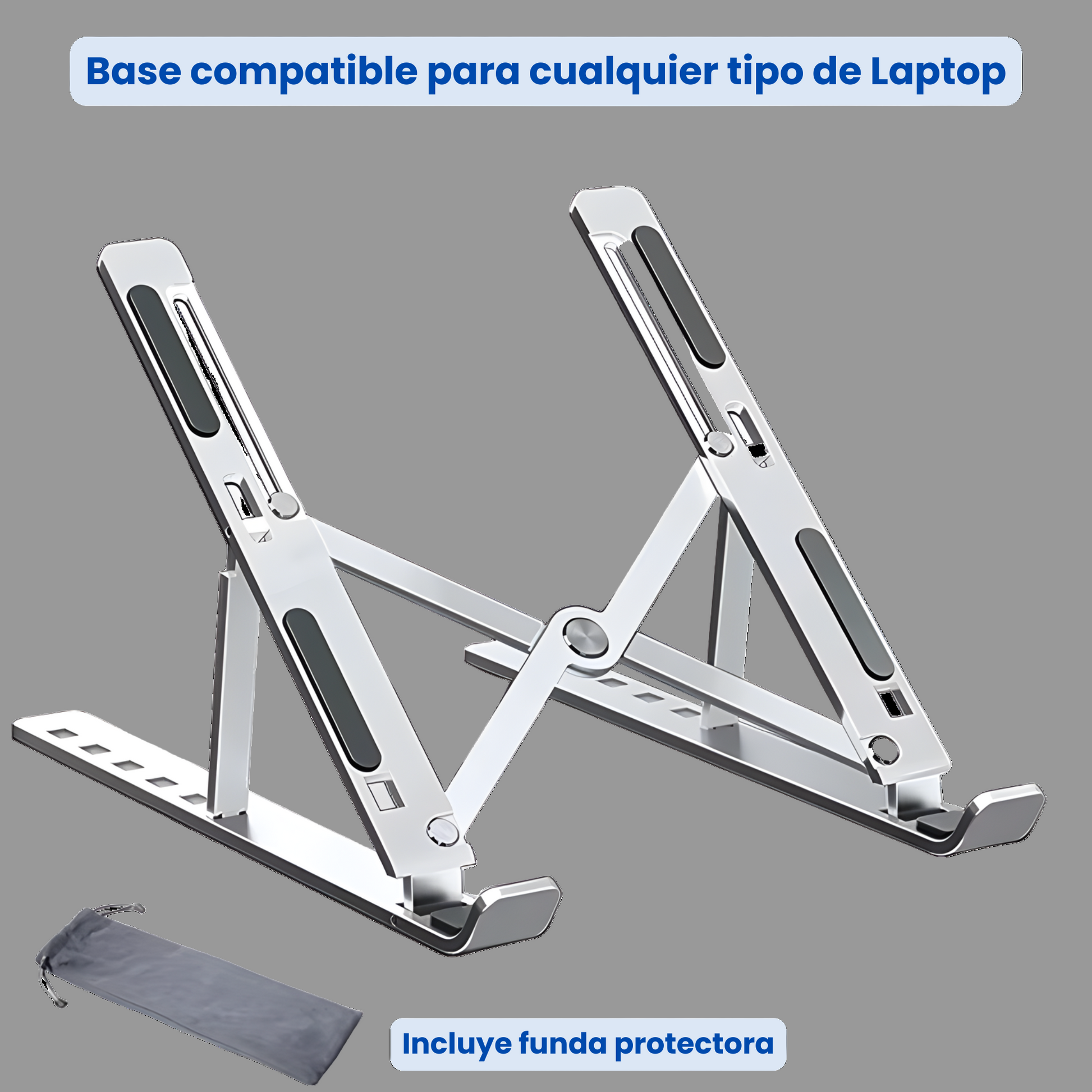 - 🛡️ Base con almohadillas antideslizantes, que mantienen tu portátil firme y protegido en todo momento.